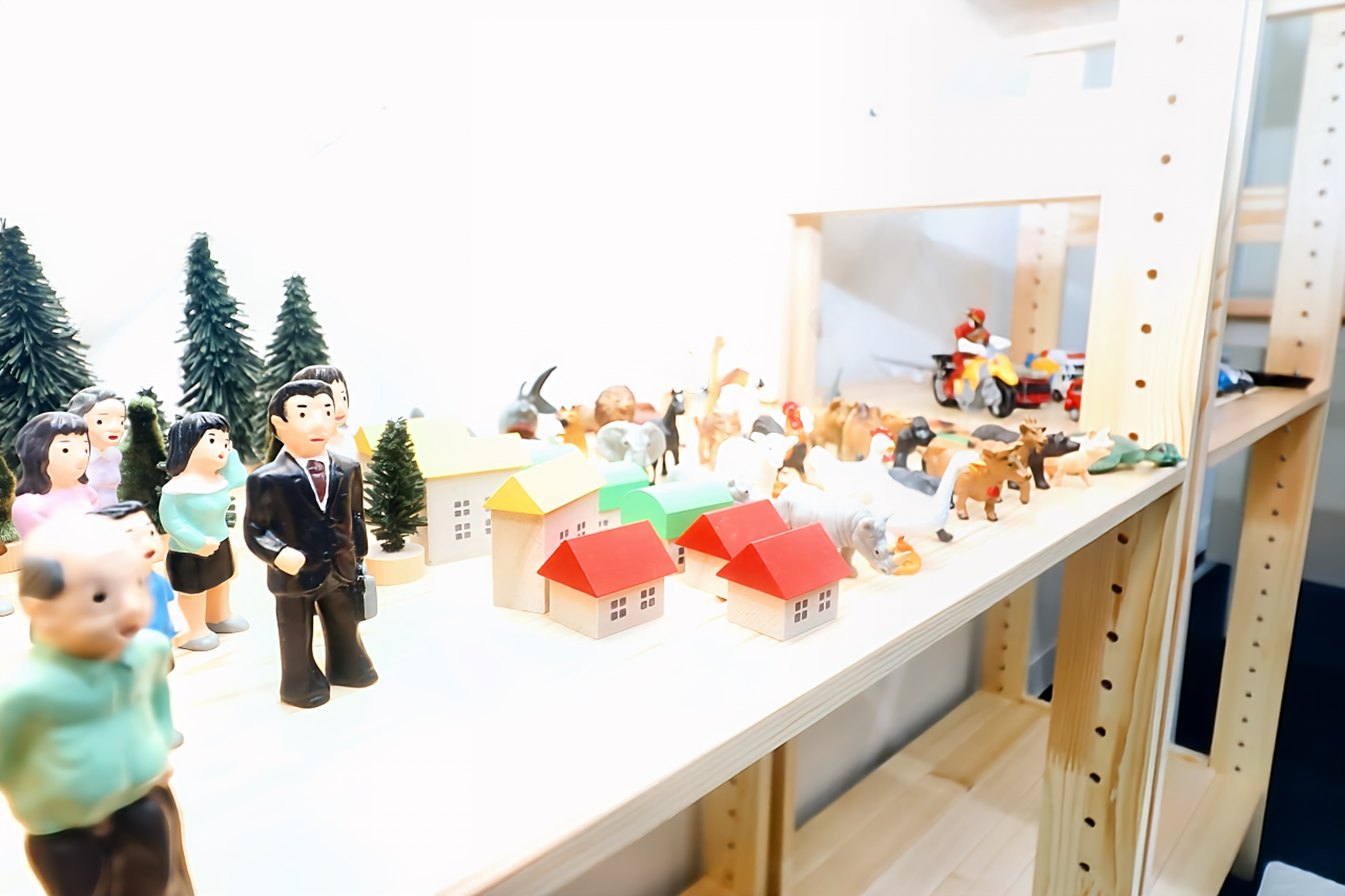 カウンセリングルーム、プレイセラピールーム、箱庭セットなど充実